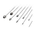 边观察映照在光轴调整屏上的红色光点,边结合实物进行光轴调节,可瞬间确认最佳的受光位置。右图表示对自动铅笔笔芯(检测物体)进行目视调节的示例。 | ![]() |